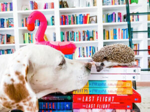 The Coles live with an 11-year-old English pointer named Copper, who has been with them since their college days, and a classroom pet hedgehog named Quilliam. Both are frequently featured on Bookcase Beauty.