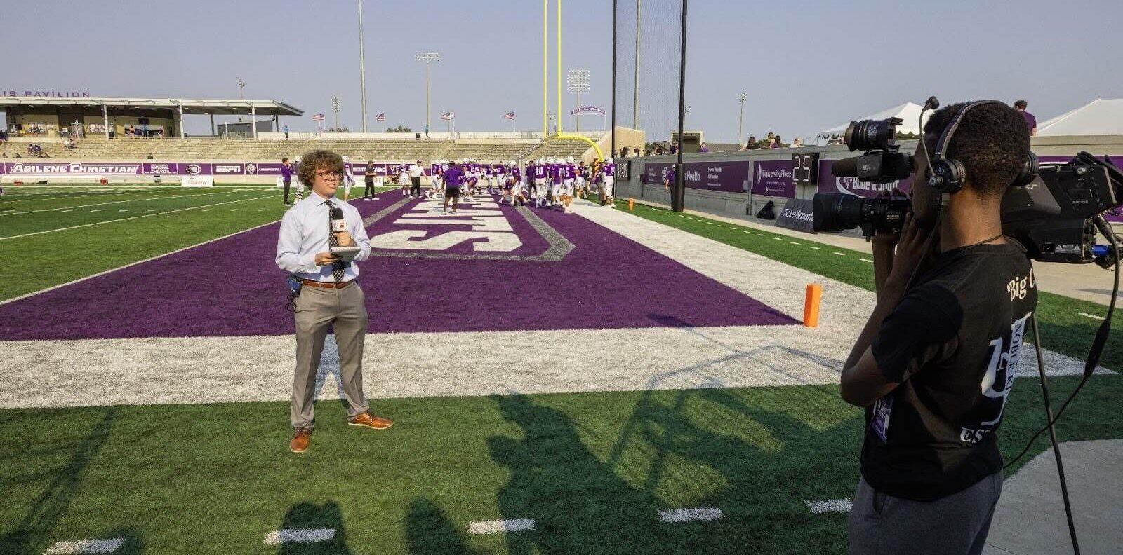 Students interested in Sports Media get real-world experience through ACUTV, ACU’s student-run television station, an ESPN+ affiliate. Here, you’ll produce live broadcasts of sporting events, create game-day highlight reels, and develop engaging digital content that reaches campus and community audiences. Working with ACUTV allows you to sharpen your skills in live production, commentary, camera operation, and digital storytelling—building a professional portfolio that prepares you for careers in sports broadcasting and media.
