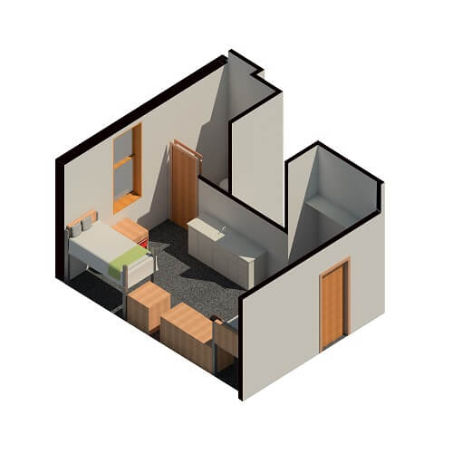 Measurements provided are an estimate. Room sizes may vary. Residence Life does not provide measurements for specific rooms.